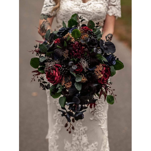 Having real flowers for your bouquet is definitely trickier when wanting to create a moody gothic bouquet style.